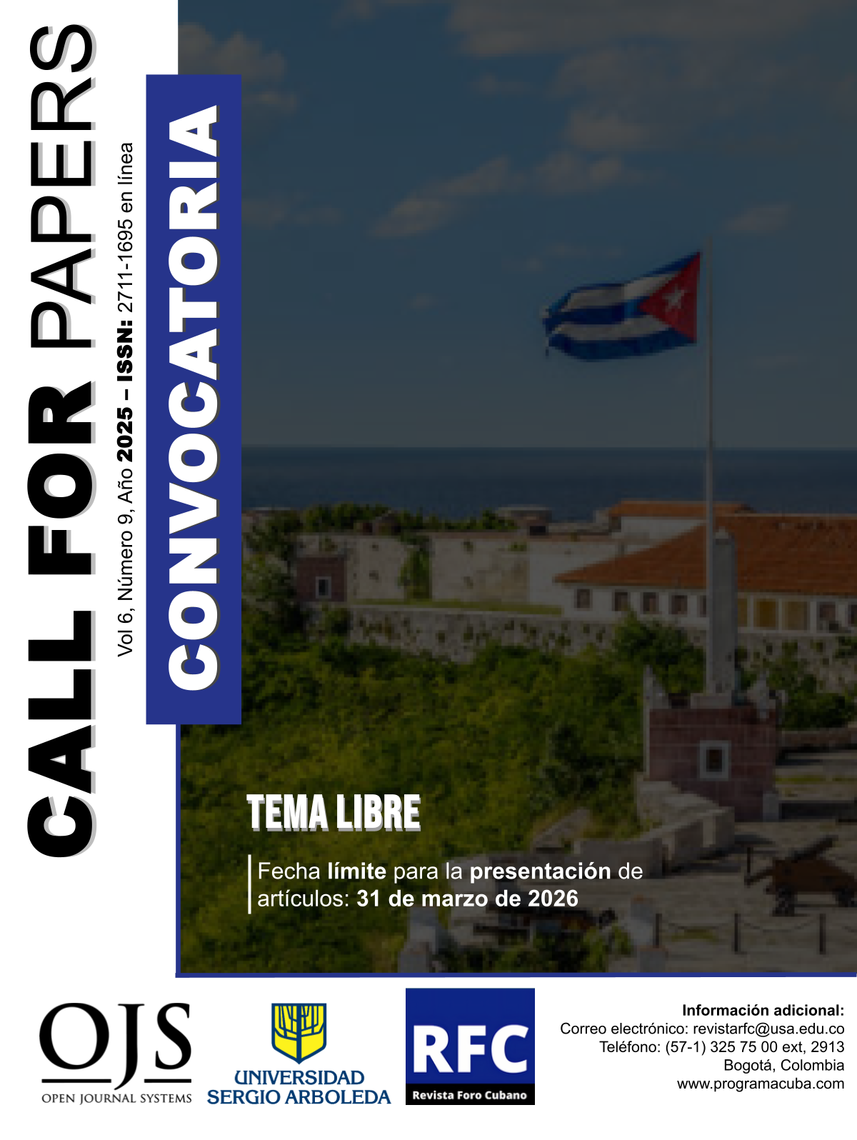 Le invitamos a participar en la convocatoria del 9no Número de la Revista Foro Cubano (RFC). El plazo máximo para postular artículos es el 31 de marzo del 2026.